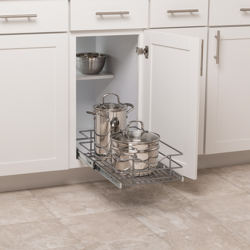 Get organized in the kitchen, bathroom or laundry with this wire pullout cabinet organizer. Installs simply in just minutes; opens smoothly, closes softly. Basket pulls out completely for full access to pantry staples, cleaning supplies, more.