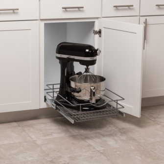 Get organized in the kitchen, bathroom or laundry with this wire pullout cabinet organizer. Installs simply in just minutes; opens smoothly, closes softly. Basket pulls out completely for full access to pantry staples, cleaning supplies, more.